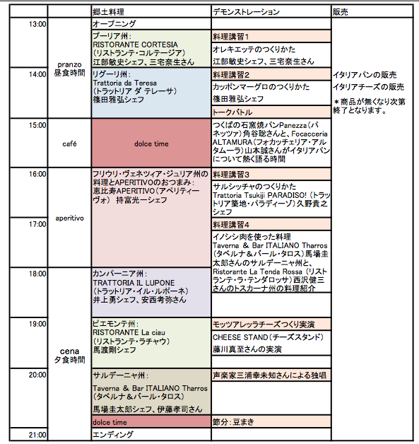 集まれ!イタリア好き イベントプログラム