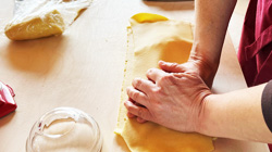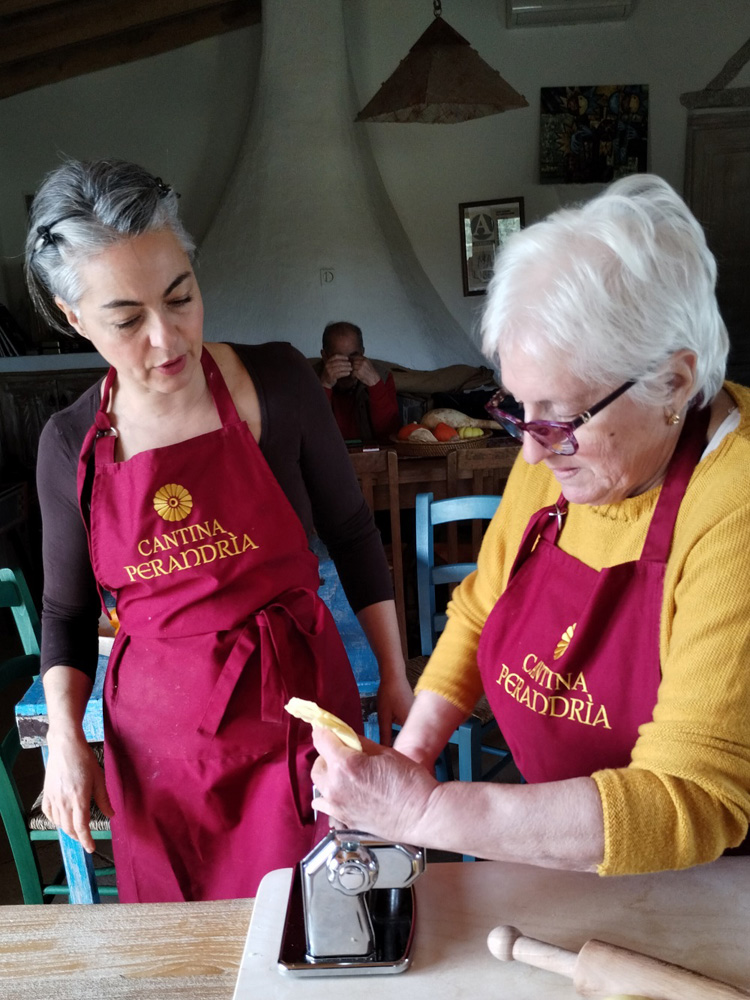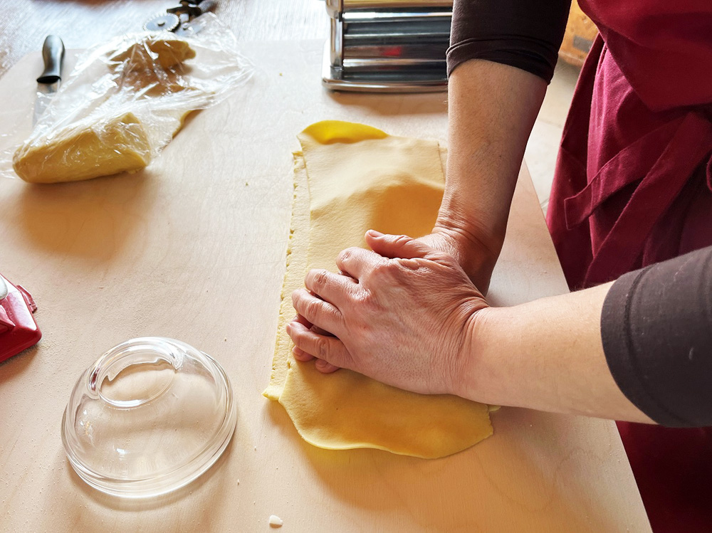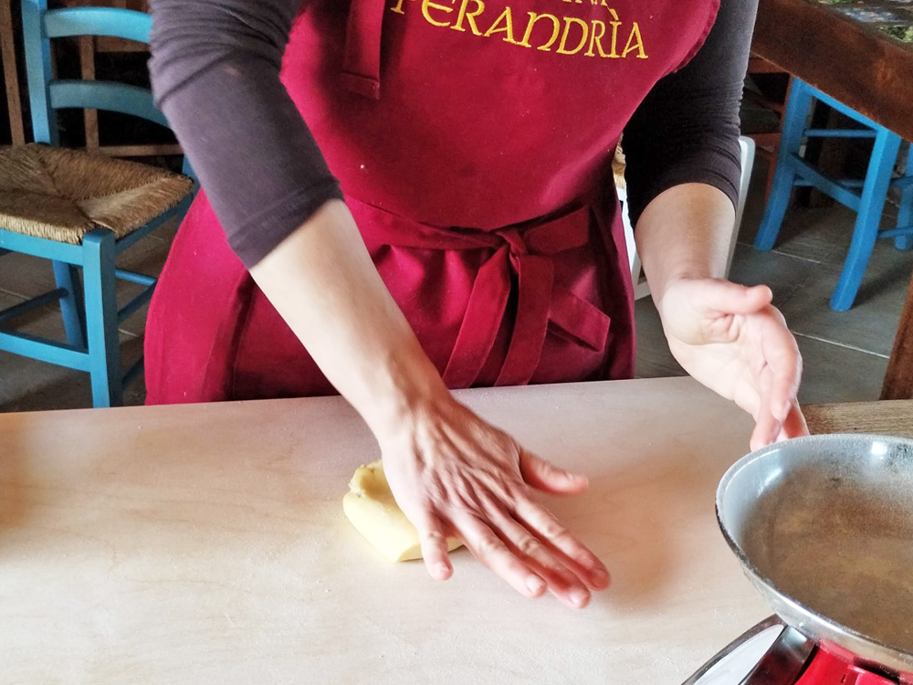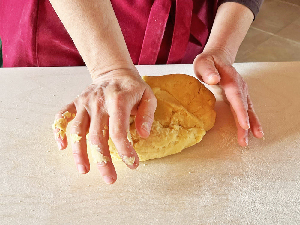 セアダスの生地を作っていると、フランチェスカのマンマのトニーナさんもいそいそとやってきました。でも娘のフランチェスカの方が手馴れています。フランチェスカが、「師匠を上回った!」と誇らしげに言うと、トニーナさんは「最近作っていなかったから」とはにかみながらつぶやきます。フランチェスカがこんなに料理を作るようになったのは、だいぶ大人になってからと言います。若いころはあまり料理をしなかったけれども、マンマの手作りの味をずっと食べ続けてきたから心にしみ込んでいる。母から娘へとしっかりと受け継がれていくマンマのセアダスのレシピです。