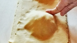 - 生地を上にかぶせ、手でやさしく押す。(写真j 参照)