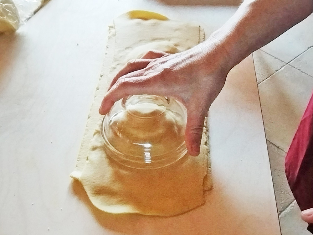 - パスタカッターで丸く切り取る。(写真m 参照)