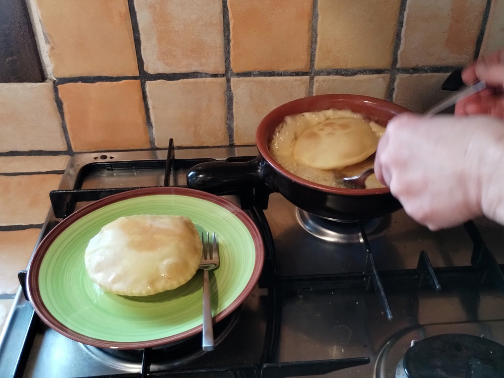 セアダスはもともとは、チーズが中に入っていることからわかるように、サルデーニャ島内陸部の酪農が盛んな地域が発祥の食べ物とも言われていますが、今はサルデーニャ中のレストランでデザートとして提供され、また、家庭でつくるマンマもかなりいます。たくさん作り、冷凍しておくマンマも多いです。