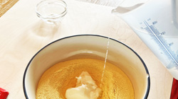 - ハチミツを小さな鍋に入れ温めて溶かしてからめる。または、そのままセアダスの上にかける。(写真p 参照)
