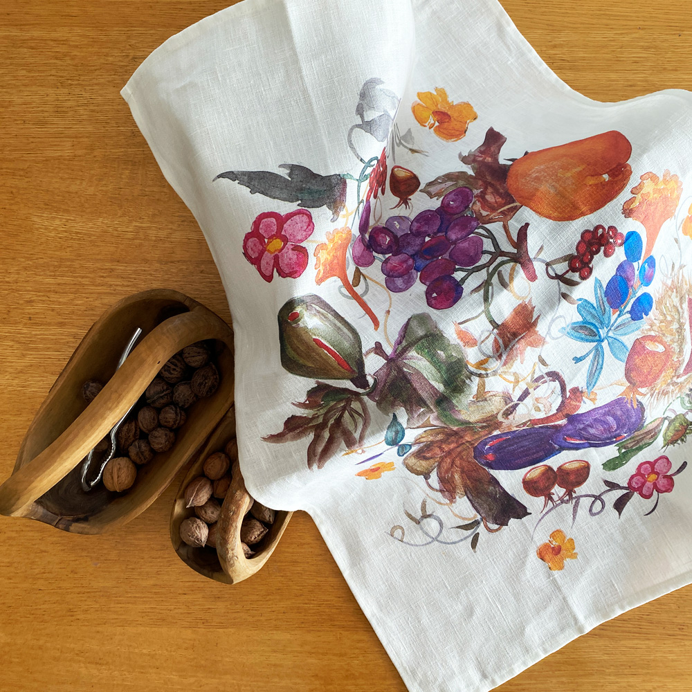 プリント柄キッチンクロス(麻100%:サイズ 横50.5cm×縦81cm)