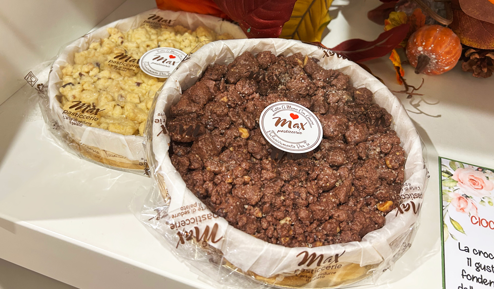 トレヴィーゾの中心地にある「パスティッチェリーア・マックス」では定番のクラッシカに加え、新たに濃厚なチョコ味の「ズブリソローナ・アル・チョコレート」を展開。ダークチョコレート、ピエモンテ産ヘーゼルナッツ、プーリア産アーモンドを使用しているそれは、シェフのマッシモ・アルバネーゼさん自ら「感動のおいしさ!」と語る逸品だ。「スブリッチョラーレ=砕く、ボロボロにする」という語源のとおり、手で崩しながら食べるトルタであるがゆえ移動中に少々壊れても心配ご無用。