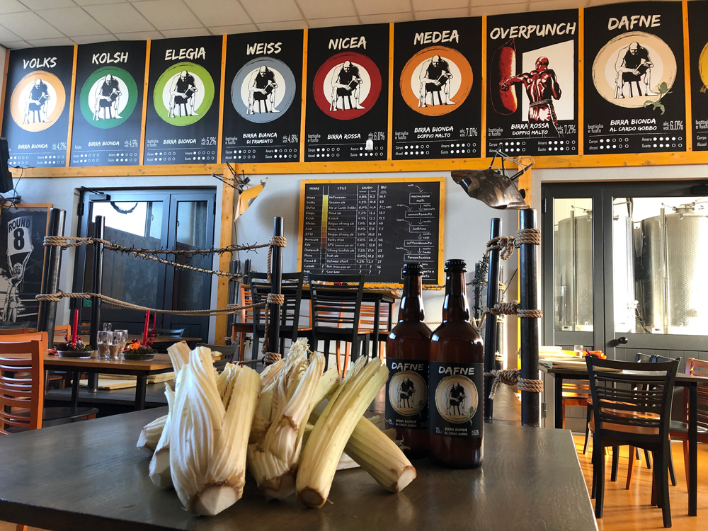 ピエモンテ州でもアスティの土の力は無限。農業もワイン生産のみならず、穀類や野菜の栽培に肉牛飼育と多岐にわたります。中でもニッツァ・モンフェッラート地区はその縮図。農家では麦も野菜も上手に栽培し、肉牛を清潔に飼い、ワインがしっかり作れてしまう。特に冬のこの時期ともなると新鮮なカルド・ゴッボを求めて多くの料理人が農家へと車を走らせます。ところが、ここニッツァの町外れには、正にその真っ白でせむしの野菜が持つ風味をビールに写し取るべく奮闘している若者たちがいます。
