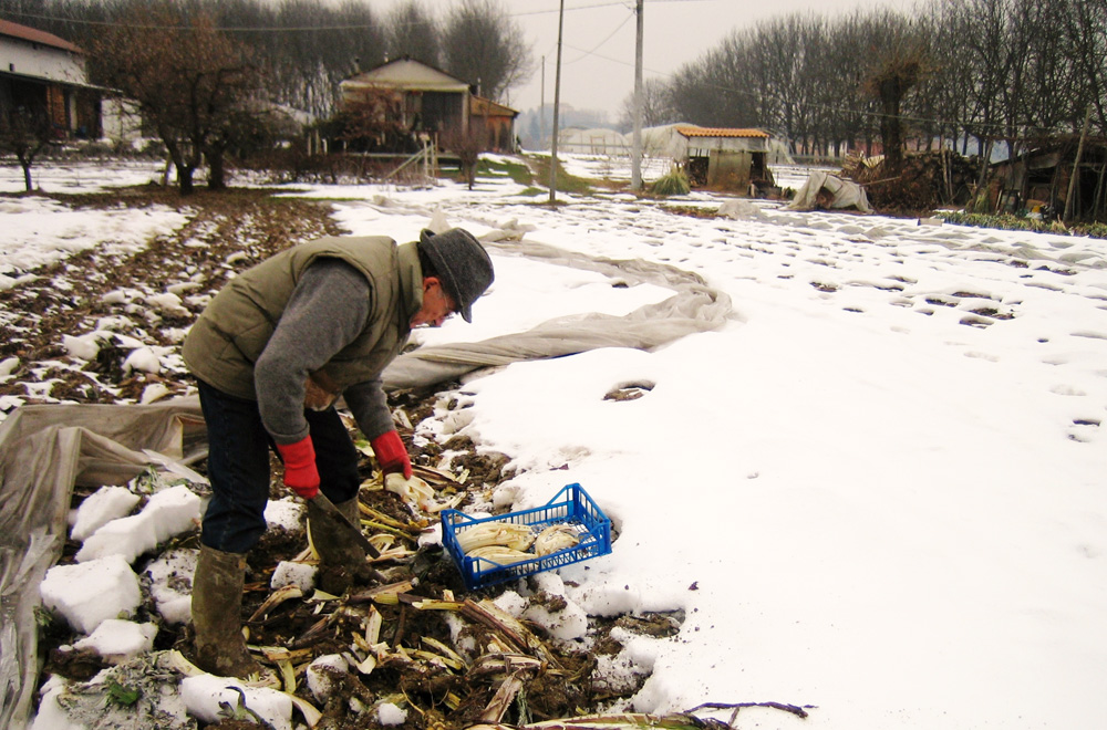 カルド・ゴッボは日本の大根のように地表面が凍るほどの寒さを体感すると甘みが増し、食感もパリッとします。しかもカルド独特のほろ苦さはそのまま。ところが今年は暖冬で、クリスマスを過ぎても零下を記録したのはたった数回。だから出来がイマイチ。年が明け、冷え込みが続き、納得のいく質のものが手に入るようになり、製造開始。漸くこのビールの醍醐味を待ちわびるファンに喜んでもらえるようになりました。