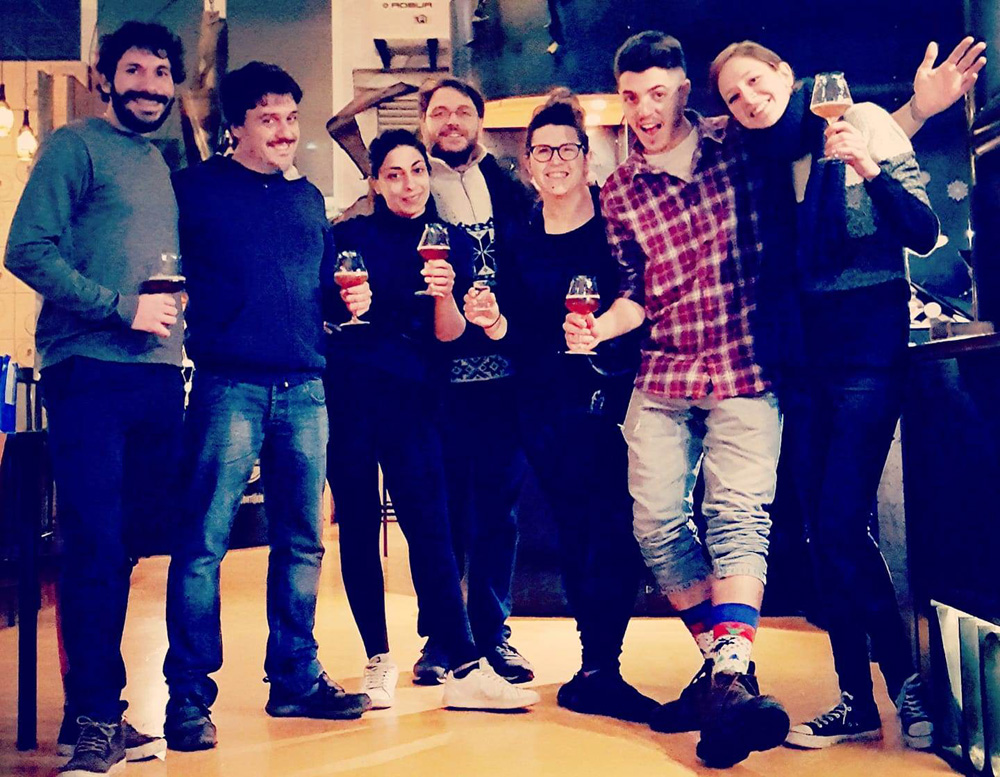 年間1000ヘクトリットル(750mlのビール瓶で13万本余り)を生産していますが、理想は地元での完全消費。たとえピエモンテ州内で発送には余り気乗りしない。このビールたちが生まれた場所で一番旨い間に飲んで欲しい。その信念から工房内にパブも作りました。工房は少しずつ成長し、今では社員数も8名に。