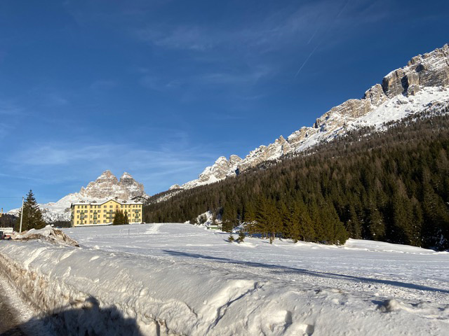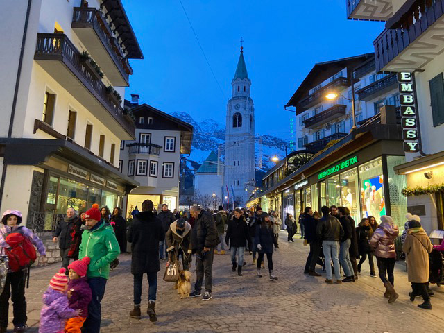 コルティーナと言えば、世界遺産ドロミテ渓谷のハイソな避暑地というイメージがありますが、夏だけではなく、冬にもイタリア各地からここに別荘を持つリッチな方々が集います。近年は観光客も増えてきました。また2026年には1956年の後、2回目の冬季オリンピックがミラノーコルティーナで開催されることが決定し、今後益々活性化していきそうです。スキー場は、オリンピックに向けて、さらに新しいコースを作り、初心者から上級者まで楽しむことができます。スキーをされなくても、ロープウエイで山頂へ行き、山小屋で雪山を見ながらのお食事も楽しめますよ。