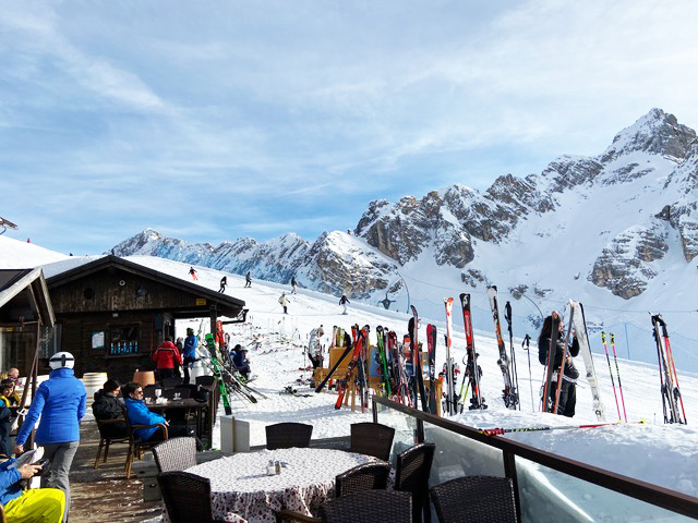 コルティーナには、ファローリアスキー場、トファーナスキー場がありますが、今回はファローリアスキー場に行ってきました。ロープウエーで雪化粧の山々を見ながらゆっくりと登って行きます。ロープウエーの到着地は2123m。