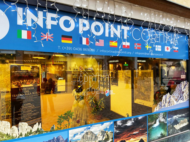 また、コルティーナの街に入ると、中心の大通り、コルソ・イタリア(corso italia 81)にインフォメーションがあり、地図、ガイドなど、細かく教えていただけます(英語)。日本語のガイドも置いてあるそうです。(私が行った時は、増販待ちでした)