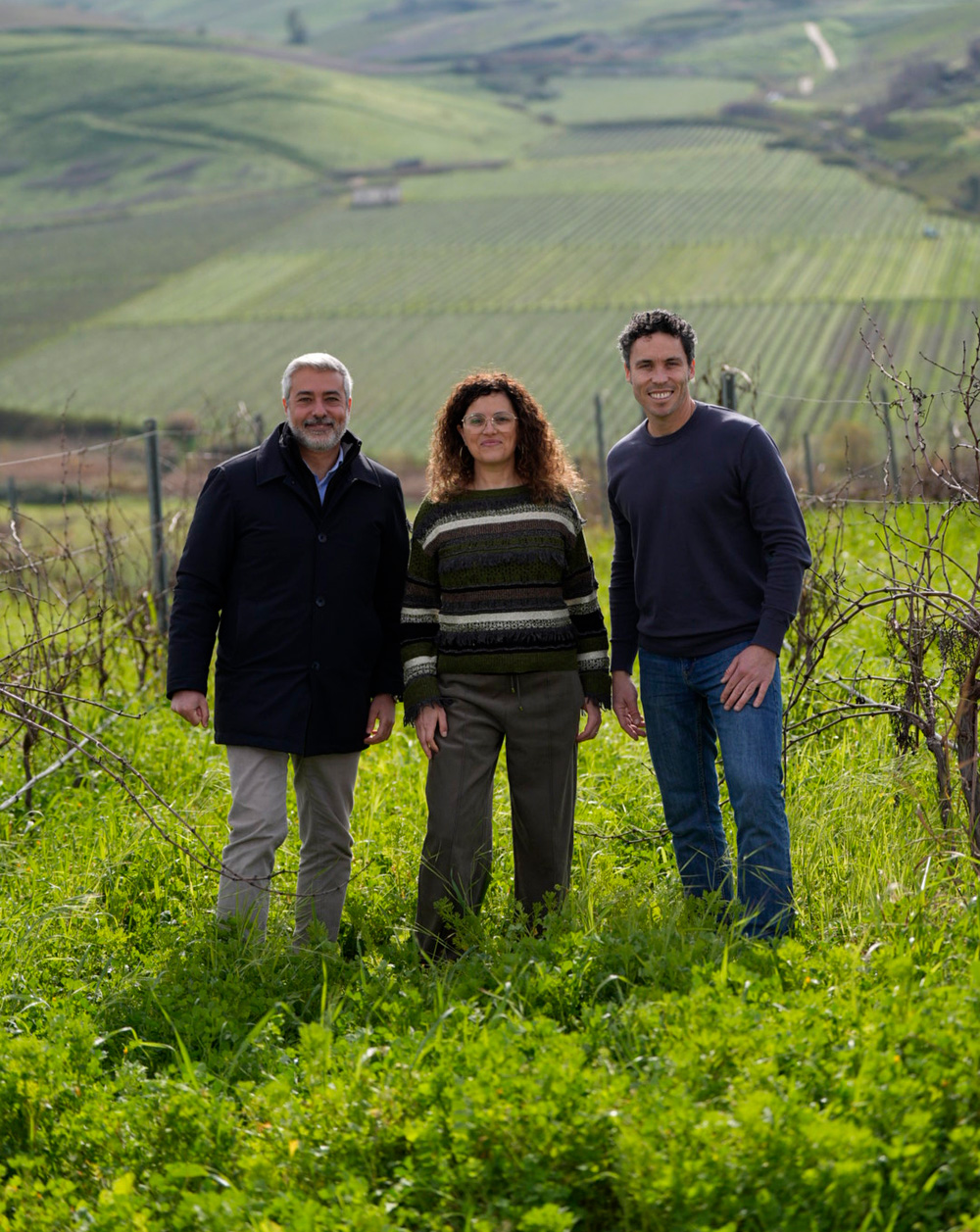シチリア西部の丘陵地帯パルタンナ。畑へ向かう道は想像以上に険しく、岩だらけの坂道をジープで進む。丘の上に立つと、視界いっぱいに広がる畑と、遠くまで続くシチリアの大地。その足元には、冬とは思えないほどたくさんの黄色い花が咲き、まるでお花畑のようだ。
