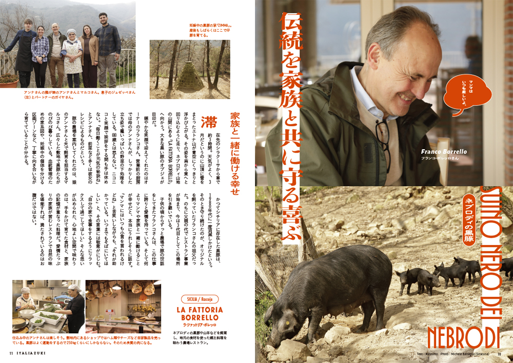 カターニア、シラクーサ、モディカ、ラグーサといったエリアを巡り、生産者を取材。「肉を食べる」という行為が地域文化とどう結びついているのかを探ります。またエトナ山東側地域に根付くワインに焦点を当て、その伝統と地域性がもたらす個性を改めて紐解きます。