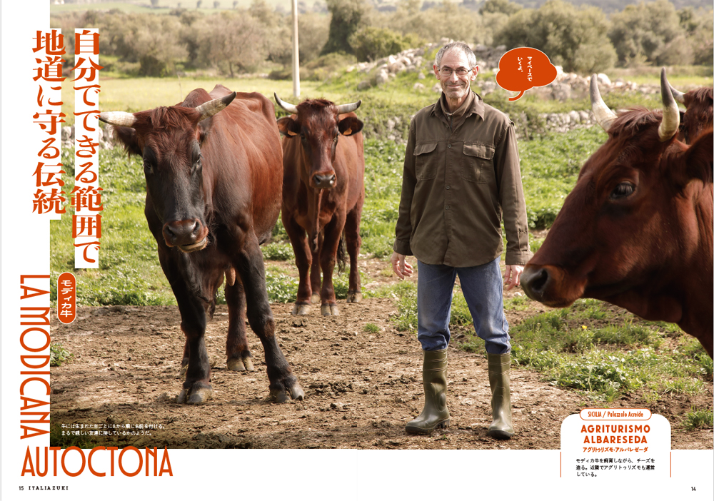 育った町の個有種である「モディカ牛を育てたい!」という夢を向き合いながら、伝統を守る、その姿に強さを感じる。