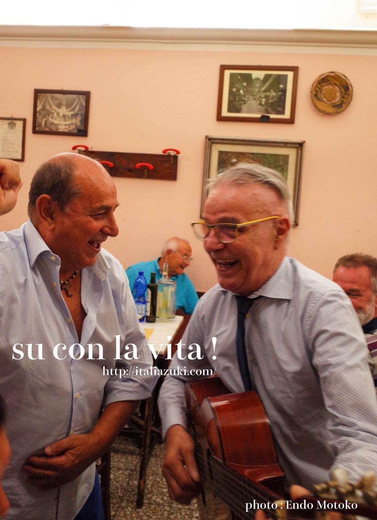 冬の伝統野菜カルドゴッボのビールを飲み干す