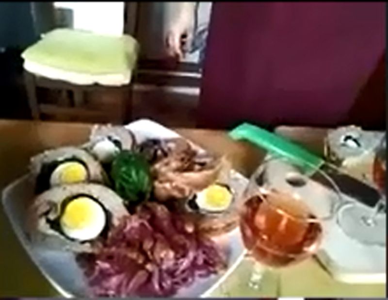 冬の伝統野菜カルドゴッボのビールを飲み干す